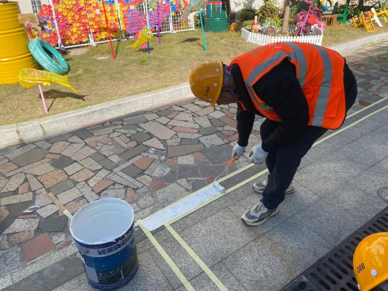 设计团队第一时间与幼儿园沟通需求,实地勘察园区每个角落。从户外活动区到室内走廊,从游戏区域到安全通道,团队仔细测量、精心规划,确保每一处标线都符合儿童活动特点和安全标准。