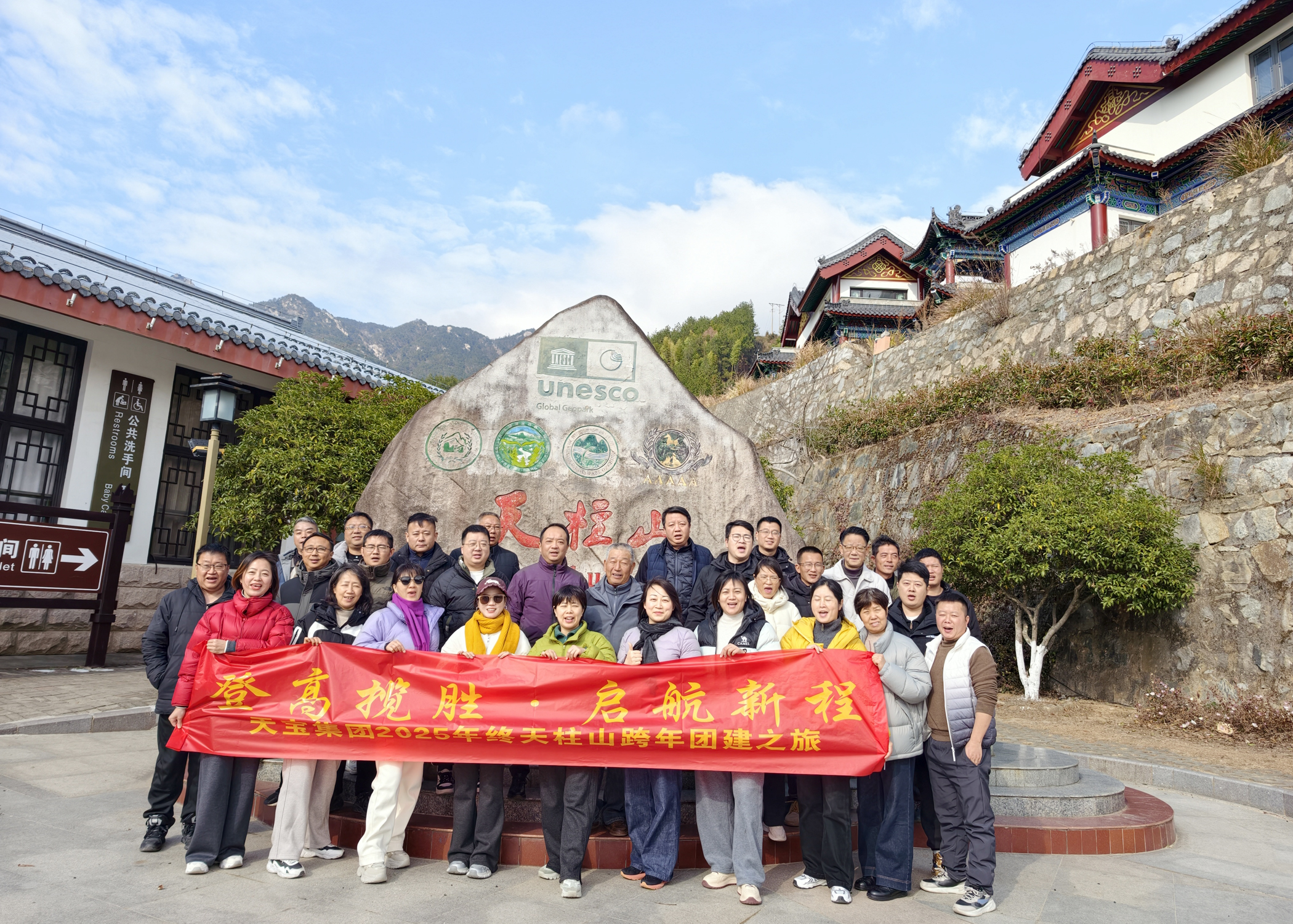 2025年12月30日至31日,黄山天宝集团组织全体员工前往安庆潜山市天柱山风景区,开展以“登高揽胜·启航新程”为主题的跨年团建活动。此次活动旨在丰富员工文化生活、增强团队凝聚力,并以“登天柱、得天助”的美好寓意,为即将到来的2026年送上集体祈愿。