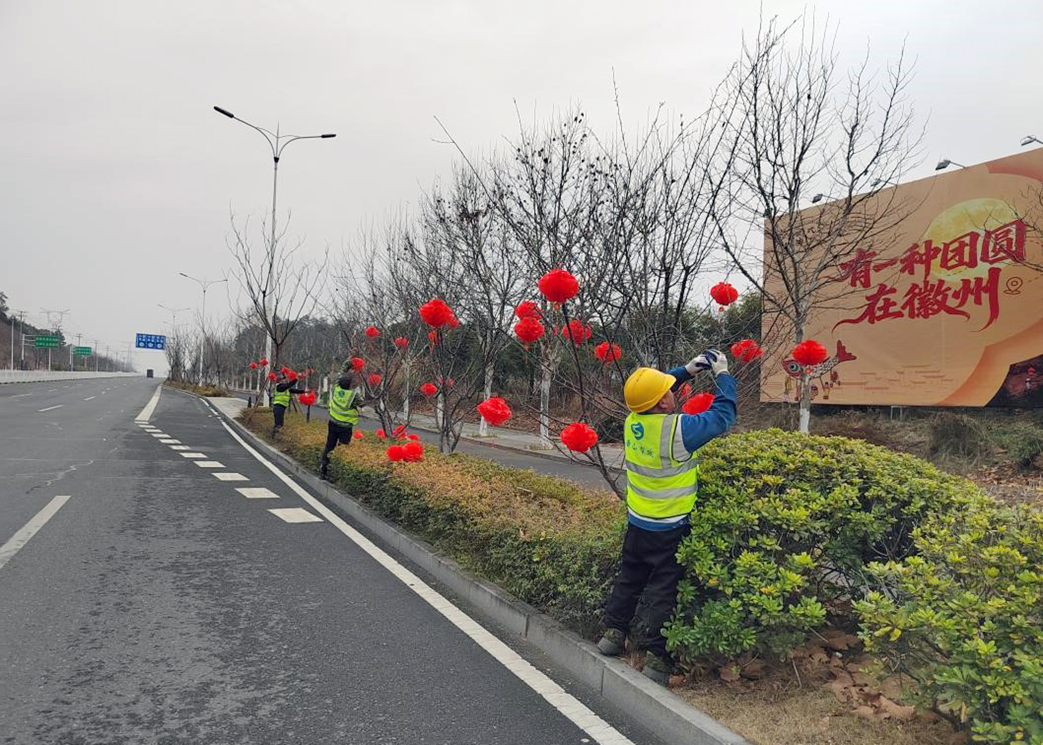 聚焦G205国道沿线绿化景观提升,组织专业队伍对行道树进行统一装饰,累计悬挂红灯笼1600余盏,沿道路两侧有序排布、高低错落。一串串红灯笼迎风摇曳,既点亮城市主干道,也为返乡市民铺就一条温馨喜庆的“团圆路”,让年味随路延伸、暖意伴行到家。