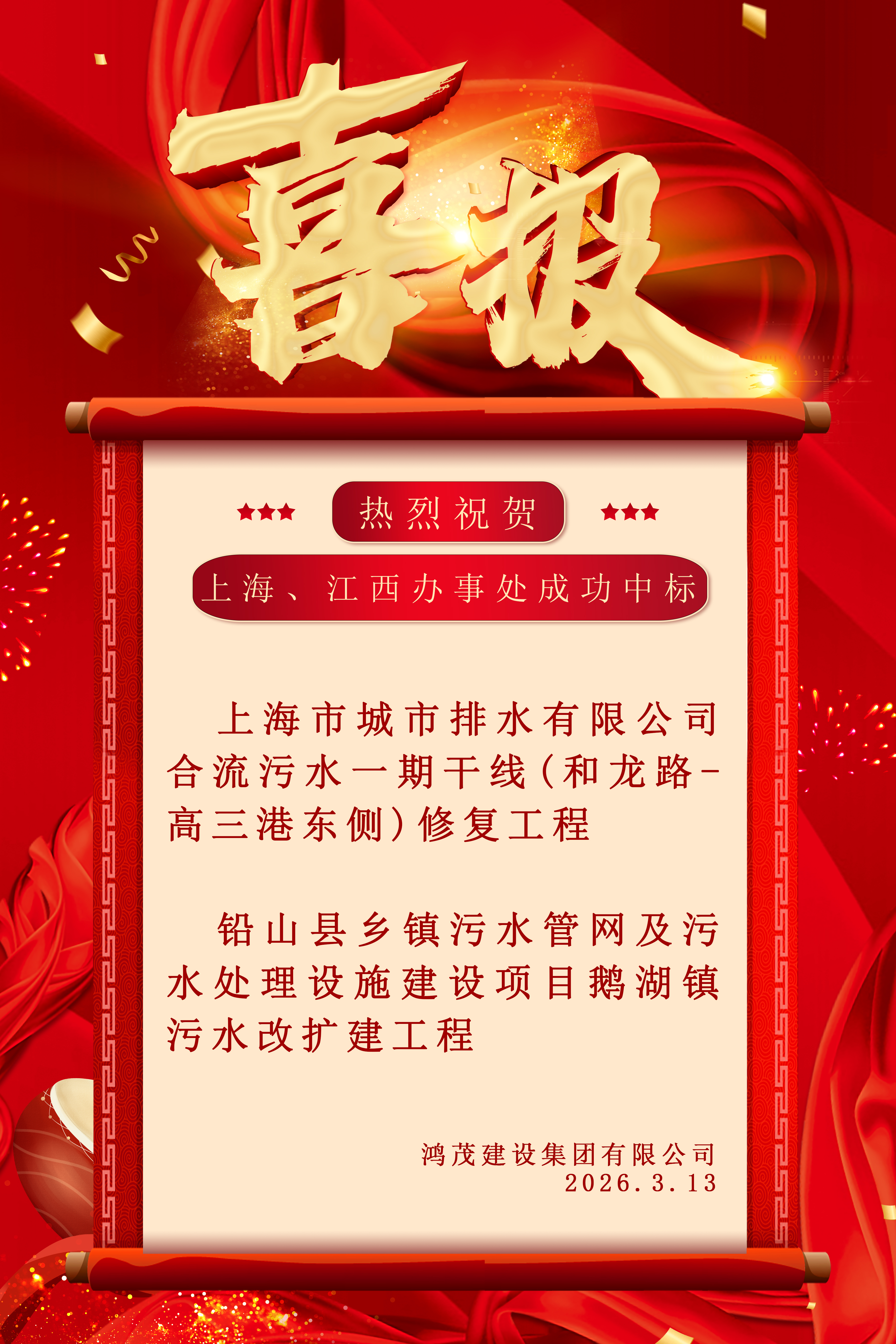 ——鸿茂建设集团有限公司域外办事处连连成功中标项目