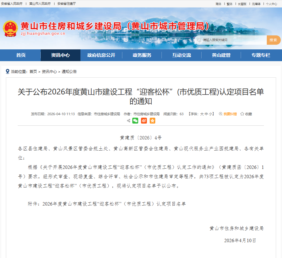 这份荣誉,是全体建设者日夜坚守、攻坚克难的成果,更是公司“品质为先、追求卓越”理念的生动实践。未来,我们将继续以荣誉为动力,在更多城市更新项目中践行工匠精神,为黄山市高质量发展贡献更多精品工程!