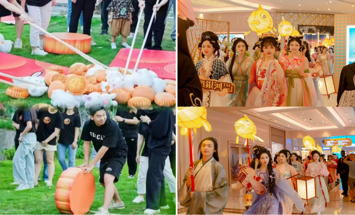 特别策划的中秋主题互动将节庆氛围拉满。趣味灯谜竞猜、体验夹月饼、汉服NPC。融合传统与趣味的游园会,还原一个最具仪式感的中秋之夜。