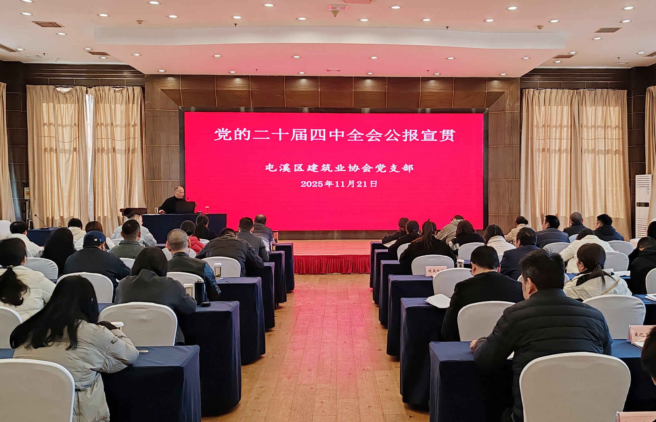 随后,屯溪区建筑业协会党支部书记、秘书长汪德利进行党的二十届四中全会精神宣贯。他从政策背景、核心要义、实践要求三个维度,深入浅出解读全会精神,引导会员单位将政策导向与企业经营战略、党建工作深度融合,找准行业发展与国家战略的契合点。