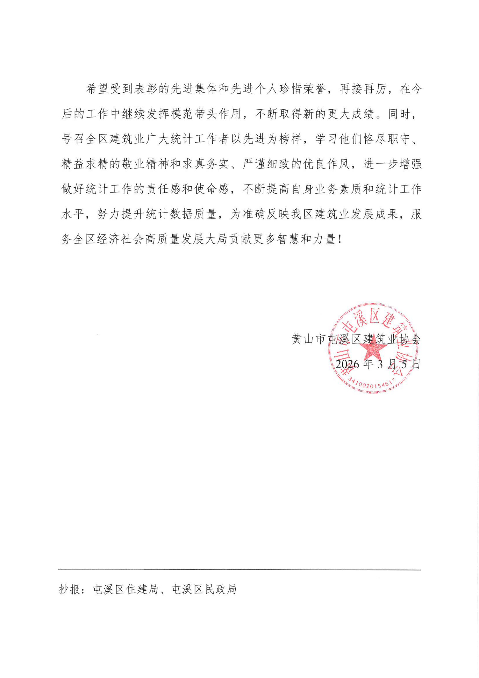 关于表彰2025年度屯溪区建筑业总产值统计工作先进集体和先进个人的通报