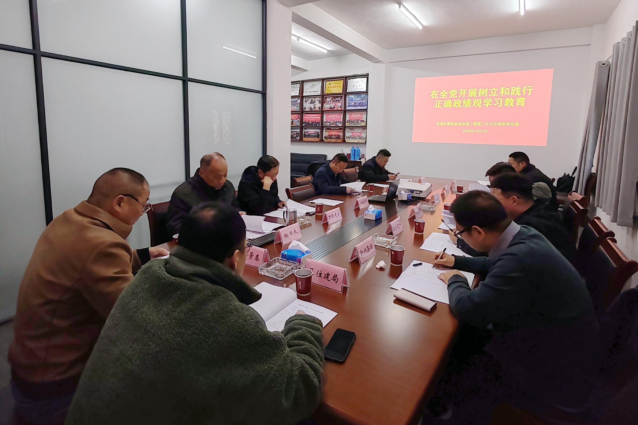 会上,区建协党支部书记汪德利带领与会同志学习了中共中央办公厅《关于在全党开展树立和践行正确政绩观学习教育的通知》,引导与会人员筑牢思想根基、把稳发展方向,以正确政绩观引领协会工作与行业发展。