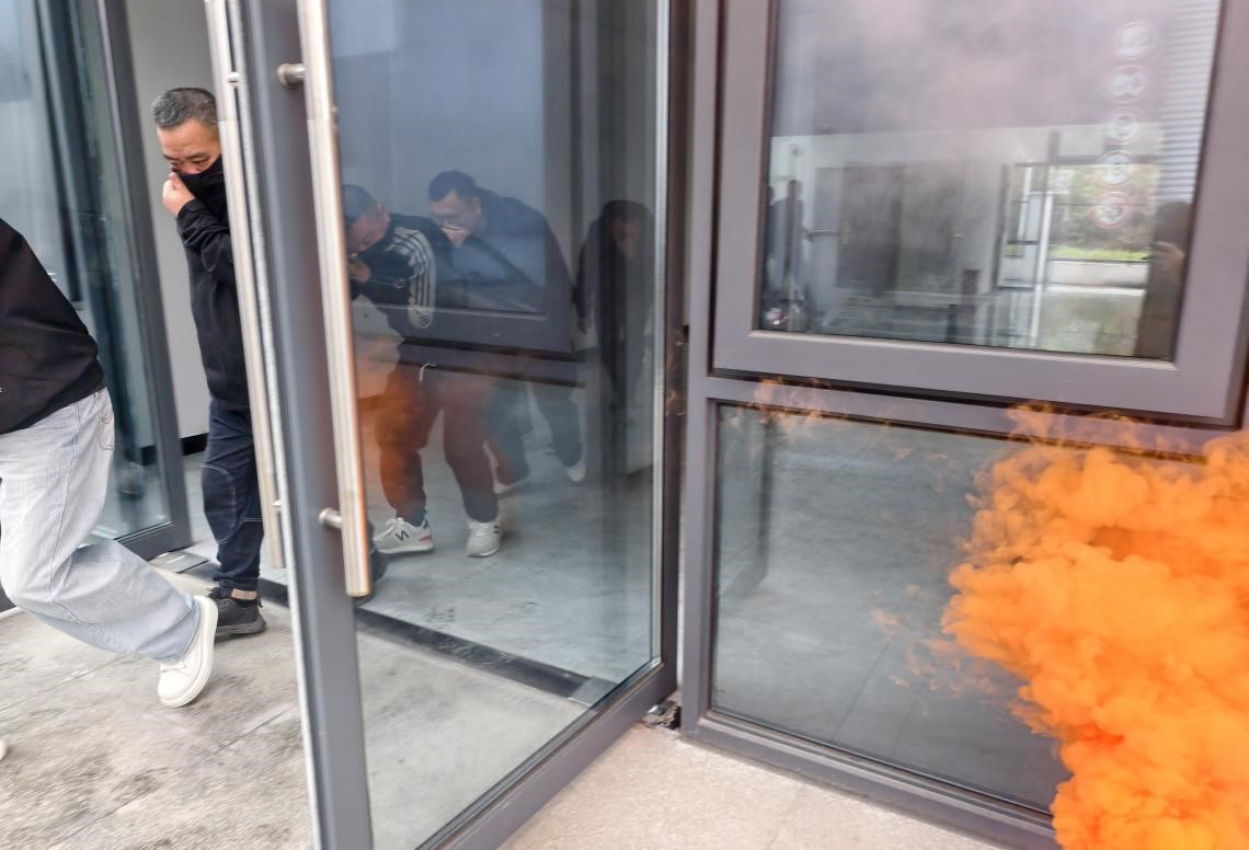 理论授课结束后,培训转入实操教学环节。教官现场示范干粉灭火器的标准化使用流程,细致拆解“提、拔、握、压”四字要领,面对面讲解注意事项,手把手指导参训人员逐一实操练习,确保全员掌握初期火灾的快速识别与科学扑救技能,真正做到了“懂操作、会使用、能应急”。随后,全体参训人员有序参与火灾应急疏散逃生演练,严格按照规范要求快速撤离至安全区域,熟练掌握了火情发生时的应急避险、自救互救和快速疏散技巧,全面提升了突发火情下的协同作战能力。